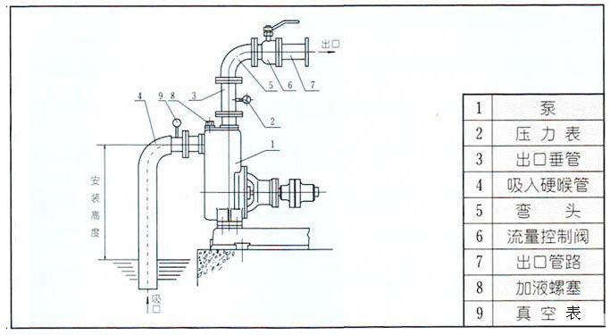 a. 吸入口的安装高度尽量不超过5米,在条件许可时,吸入口的安装高度应尽可能地低于油库最低储油面.并尽量缩短吸入管的长度,少装弯头.这样有利于缩短自吸吋间.提高扫舱功能。